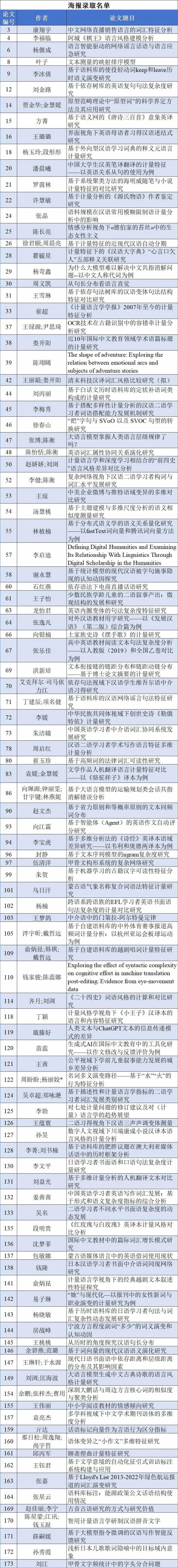 在此背景下,南京师范大学文学院、南京农业大学信息管理学院、北京语言大学语言科学院计量语言学研究中心将联合举办“语言计量与数字人文”暨第七届计量语言学学术研讨会。会议拟于2024年10月17-18日在南京师范大学随园校区召开。现将论文录用情况与日程安排通知如下。